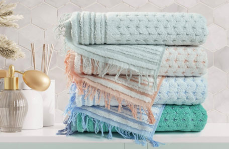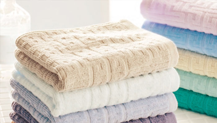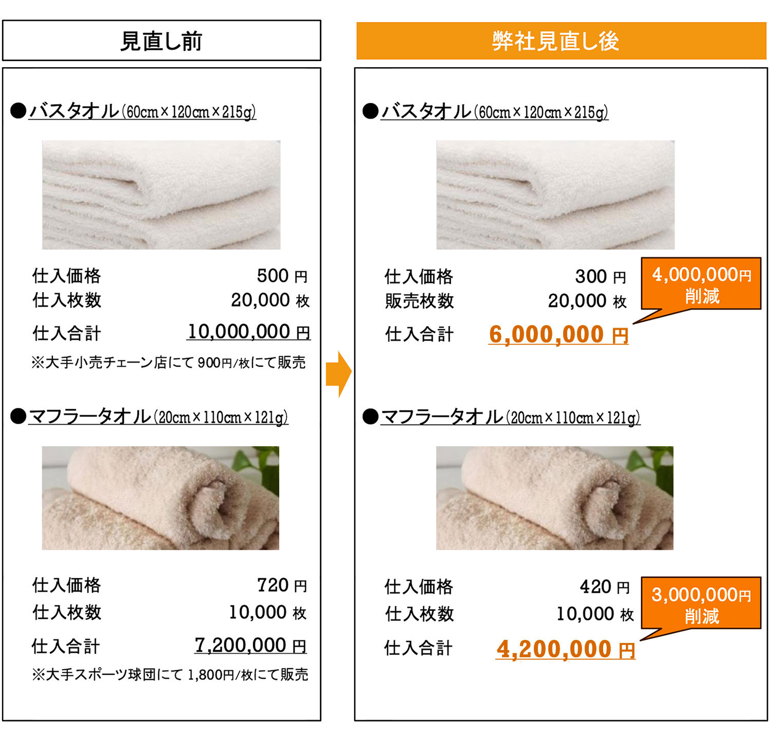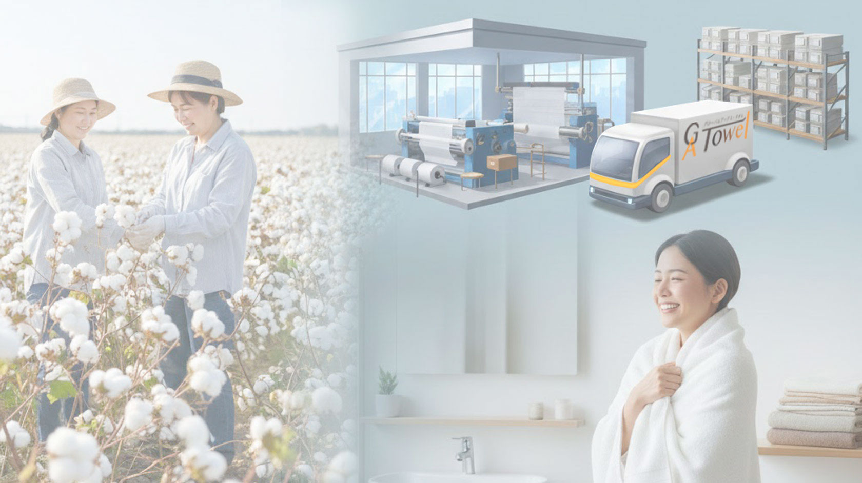 タオル製品「材料調達」「製造」「流通(在庫管理・輸送)」「販売」の一連のプロセス